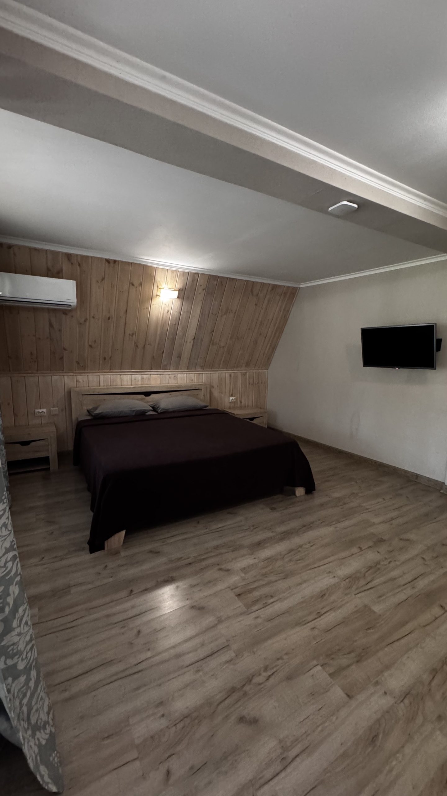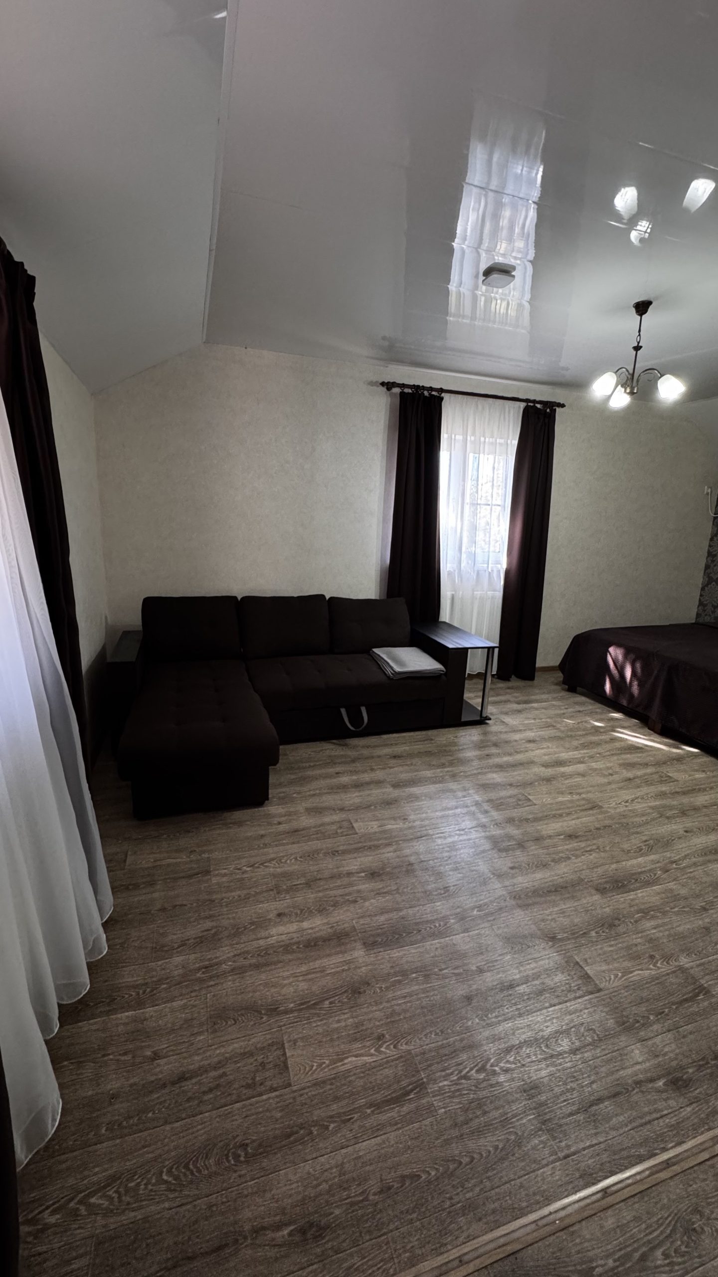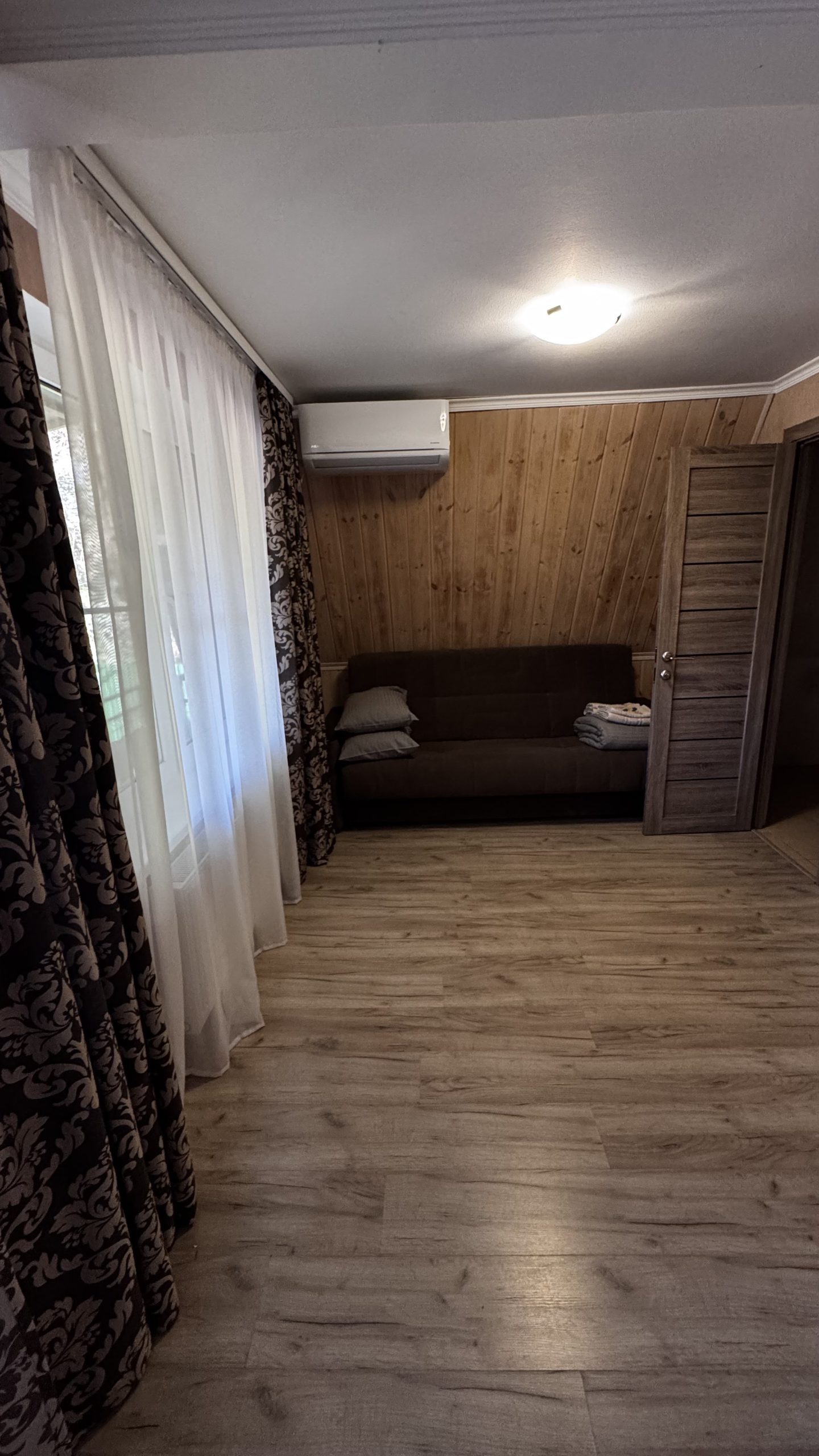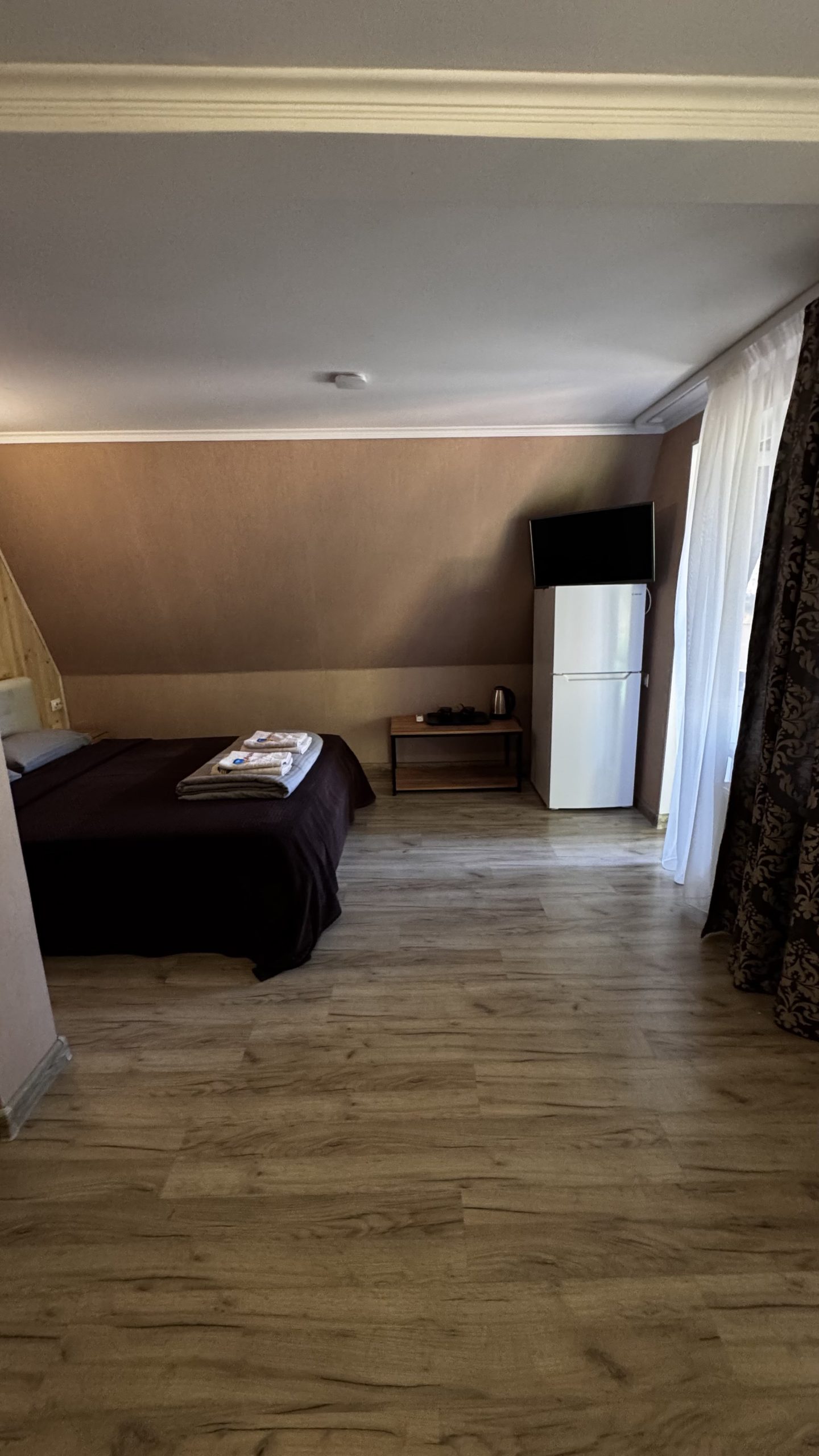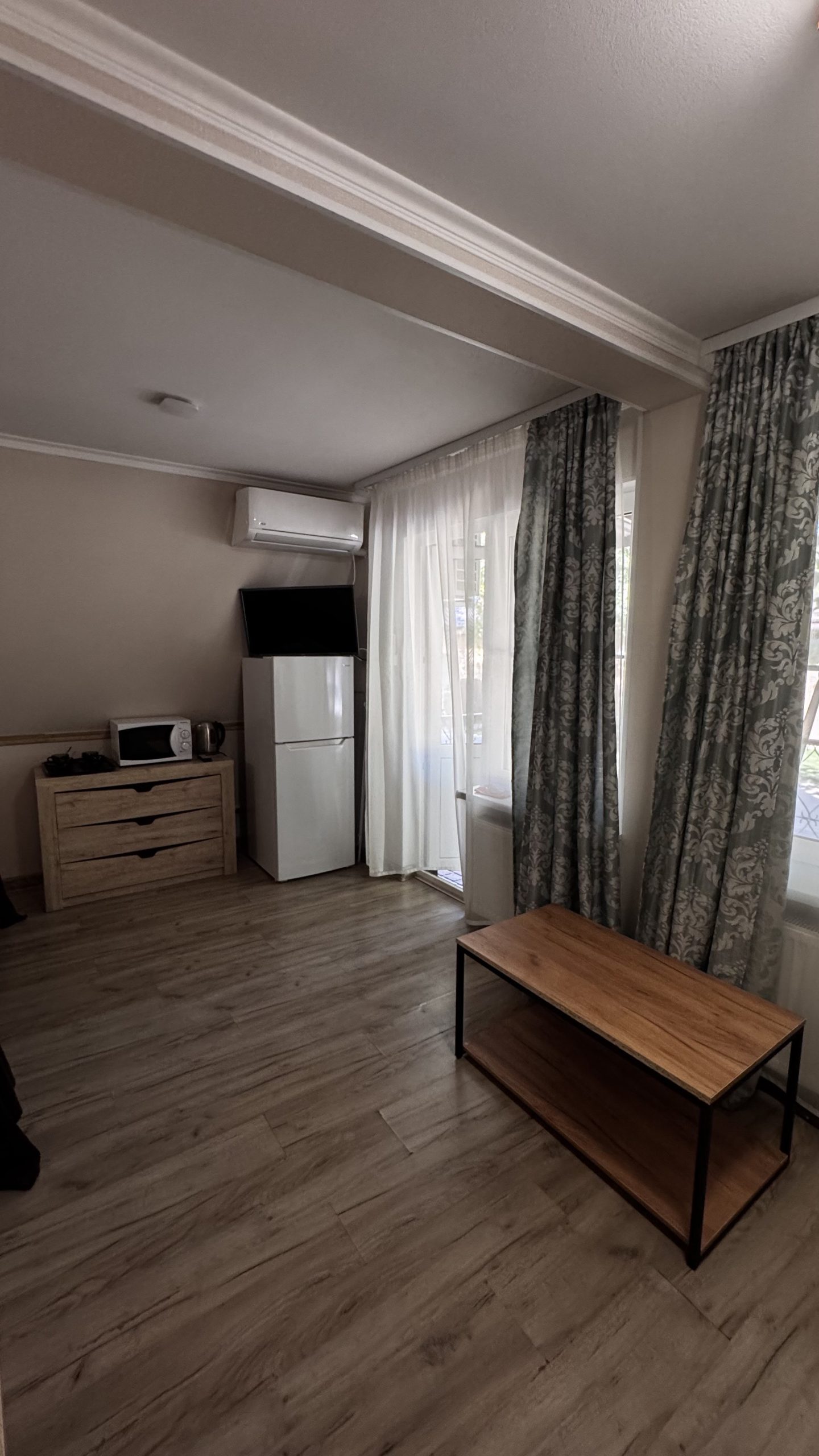 1-но комнатный, четырёхместный номер, расположен на втором этаже, (двуспальная кровать и раскладной диван), ТВ, сплит-система с ПДУ, холодильник.