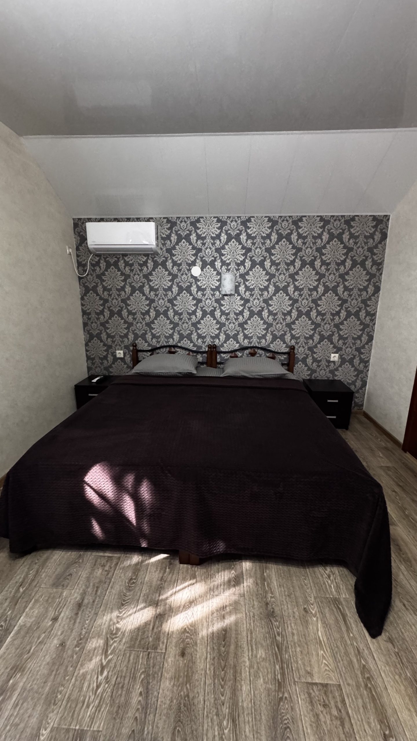 1-но комнатный, четырехместный номер (комната с двуспальной кроватью), холодильник, телевизор с ПДУ, сплит-система с ПДУ.