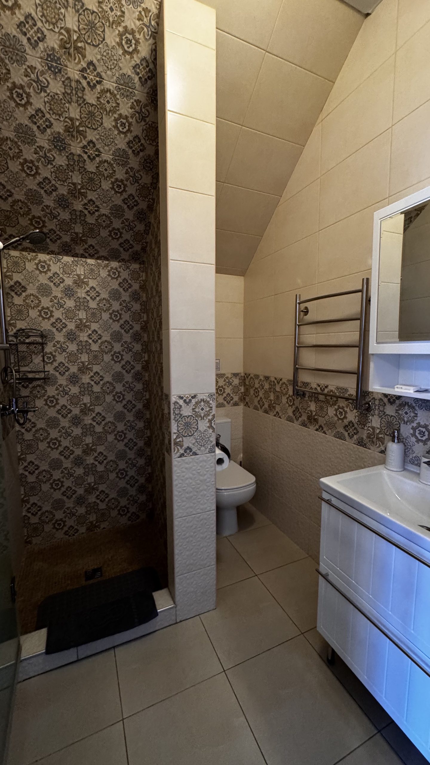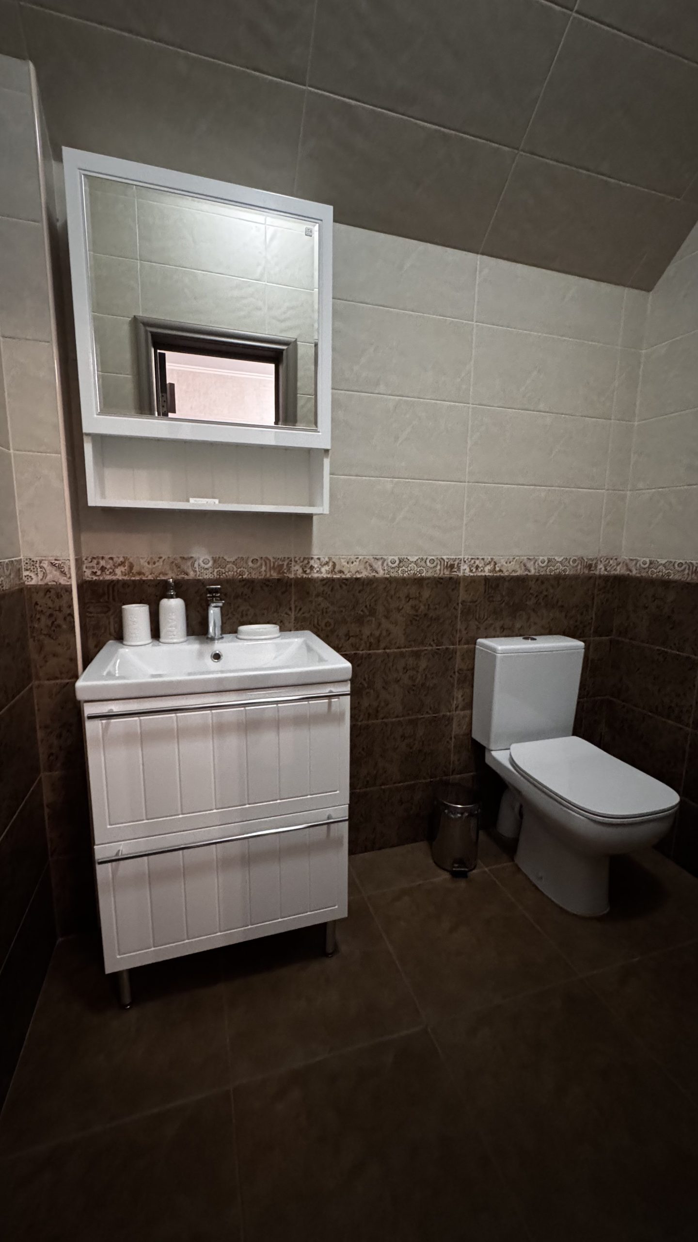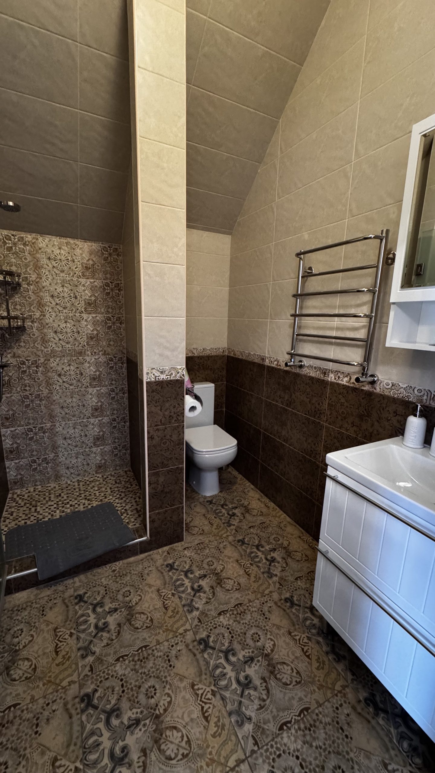 Два санузла, фен, халат банный 2 шт., полный комплект туал. принадлежностей (шампунь, мыло, гель для душа, зубная паста/щётка, одноразовый станок).