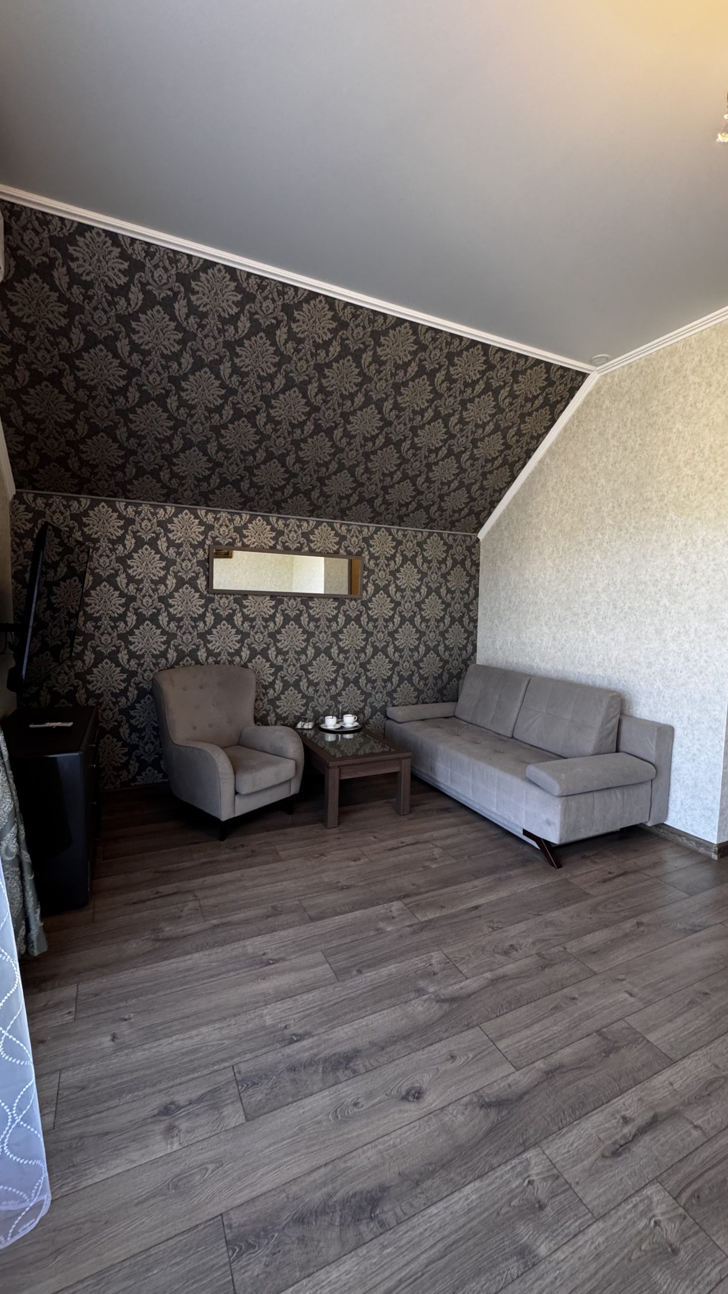 1-но комнатный, двухместный номер, расположен на втором этаже, (комната с двуспальной кроватью), ТВ с ПДУ, сплит-система с ПДУ, комплект посуды для чаепития, мини-холодильник, шкаф, диван, кресло.