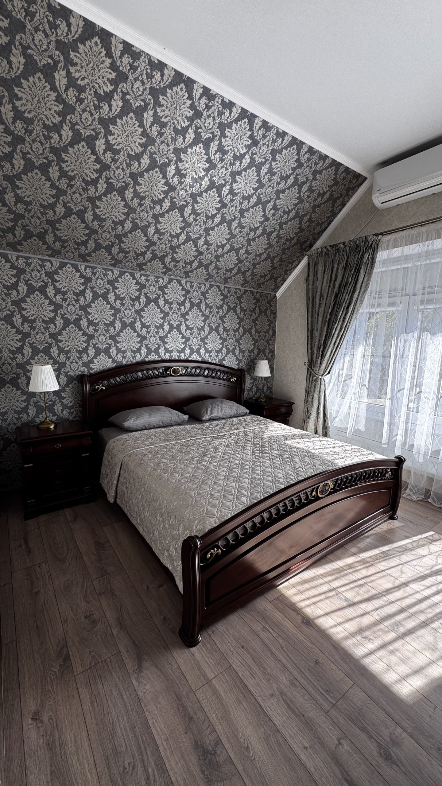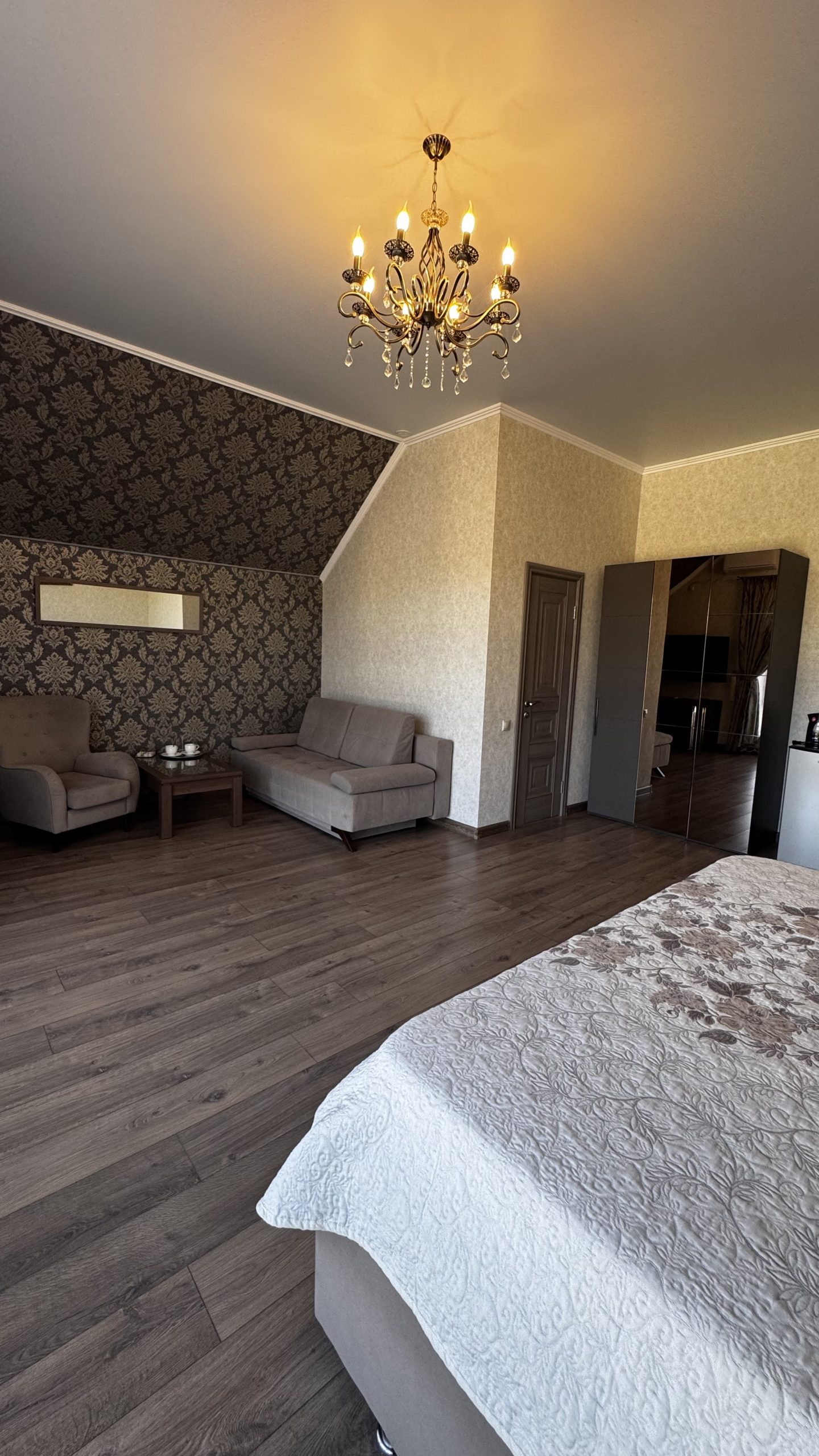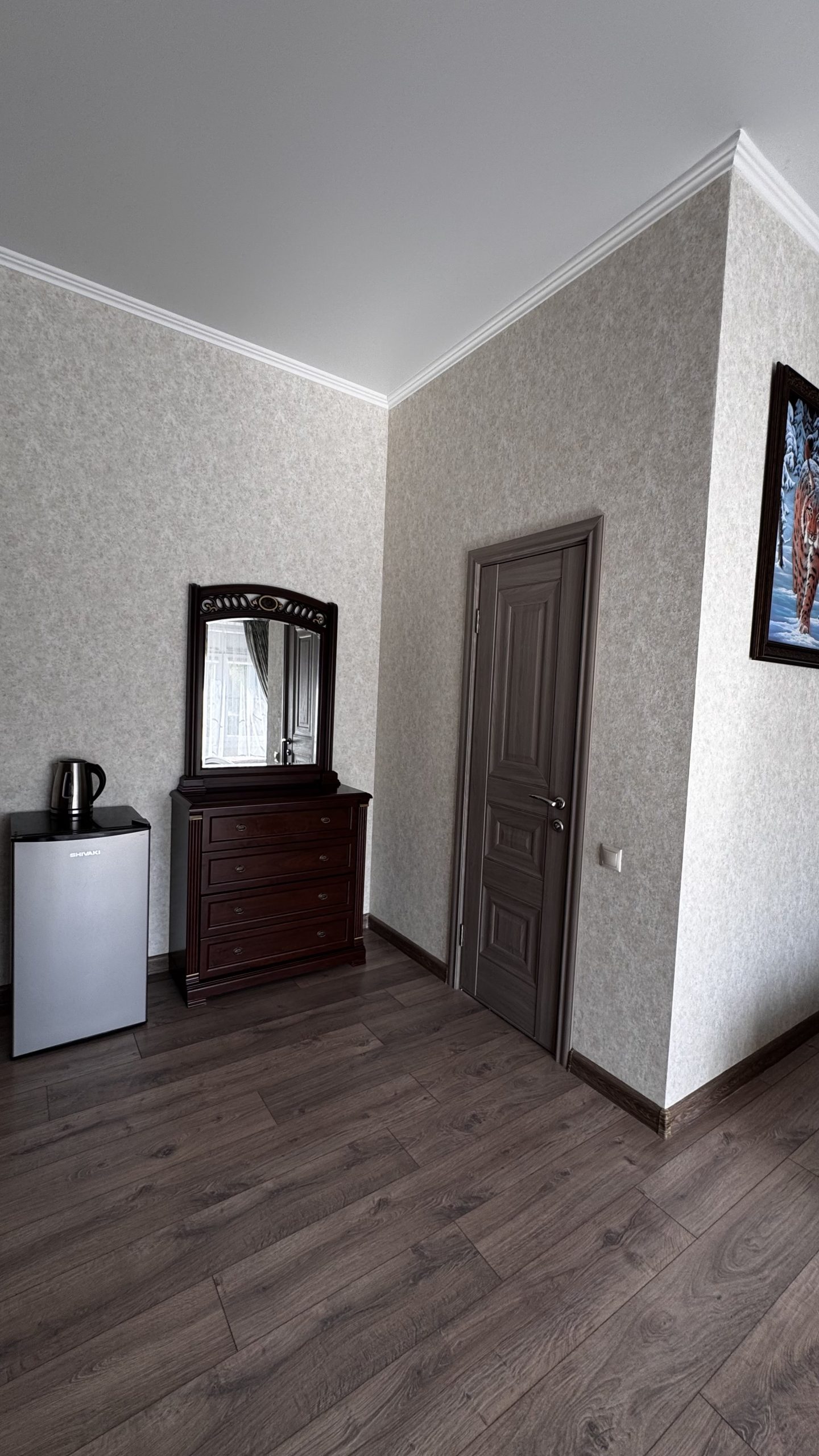 1-но комнатный двухместный номер, с двумя балконами, (с видом на бассейн и ротонду), расположен на втором этаже, (1 комната с двуспальной кроватью), кухня с газовой плитой, холодильник, полный комплект посуды на 4 персоны, телевизор с ПДУ, сплит-система с ПДУ, WI-FI.